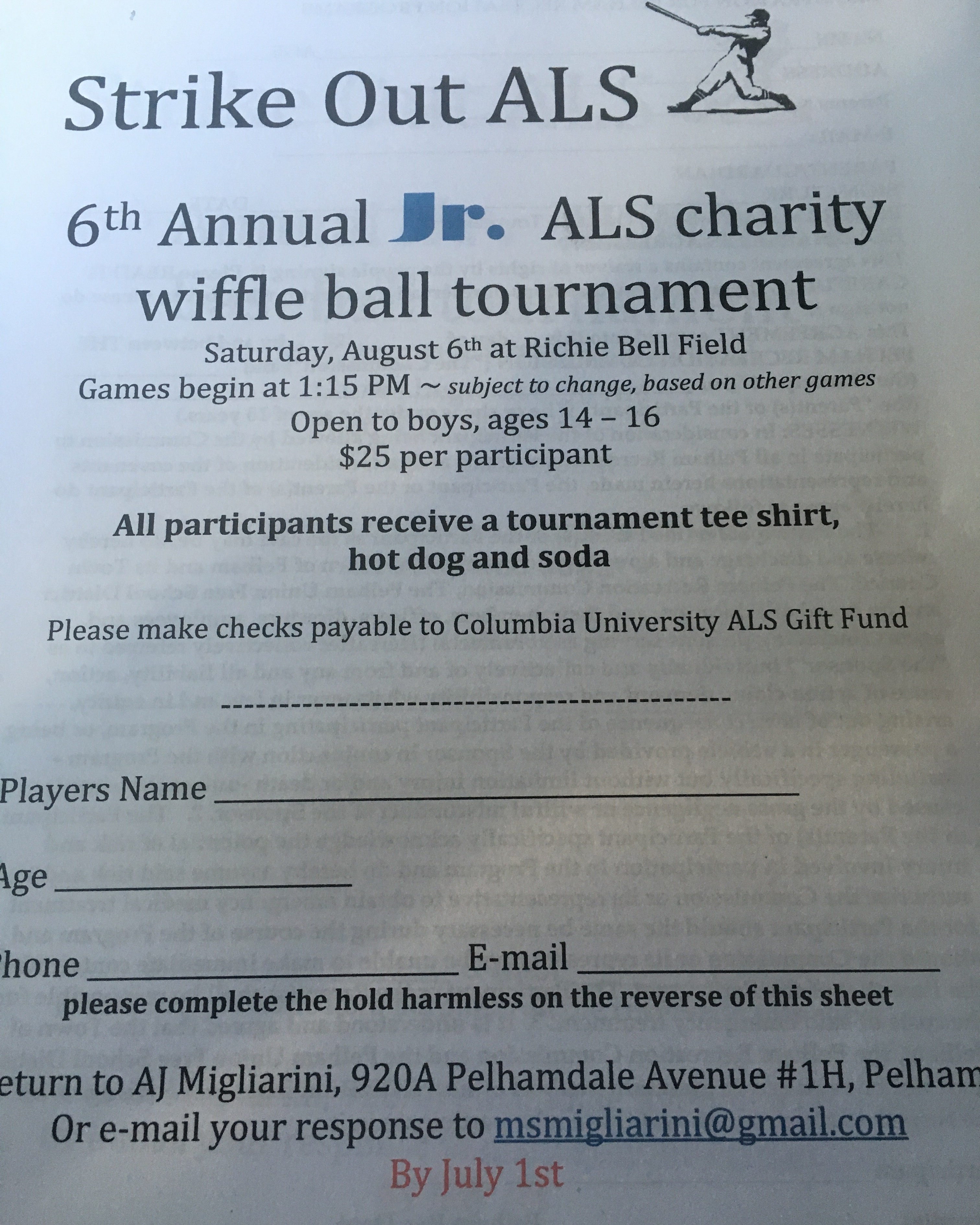 Strike Out ALS Where: Pelham, NY When: 1:15PM