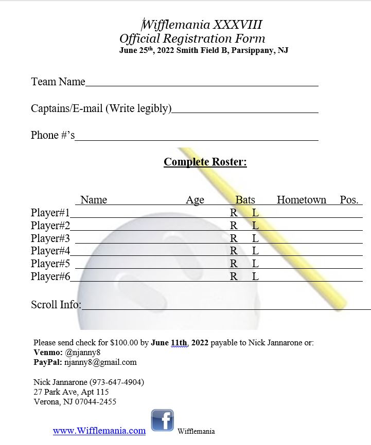 WIFFLEmania XXXVIII Where: Parsippany-Troy Hills, NJ Facebook & Registration